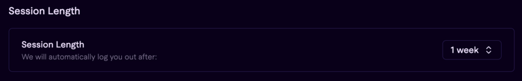 The session length setting determines how long you remain logged in before being automatically signed out. Shorter sessions reduce risk on shared or unattended devices, while longer sessions prioritize convenience for active trading. This setting allows users to balance security and usability based on their operating environment.
