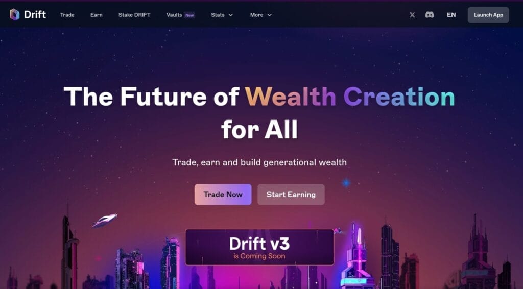 - Drift: Built on Solana, leveraging its high throughput and fast finality for low-slippage execution and an on-chain orderbook. Great if you already live in Solana DeFi.
