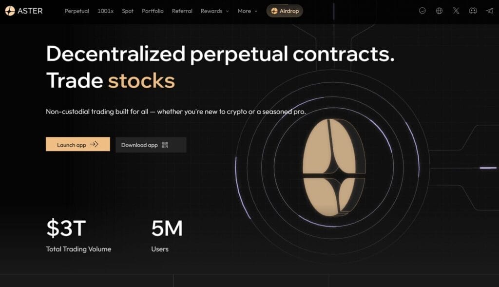 - AsterDex: Markets span perps and spot, plus headline features such as “Stocks meet crypto” (synthetic U.S. stock exposure settled in crypto) and 100x leverage messaging; liquidity is pooled/aggregated to support larger orders with minimal routing friction. (Always verify local regulations before trading synthetic equities.)