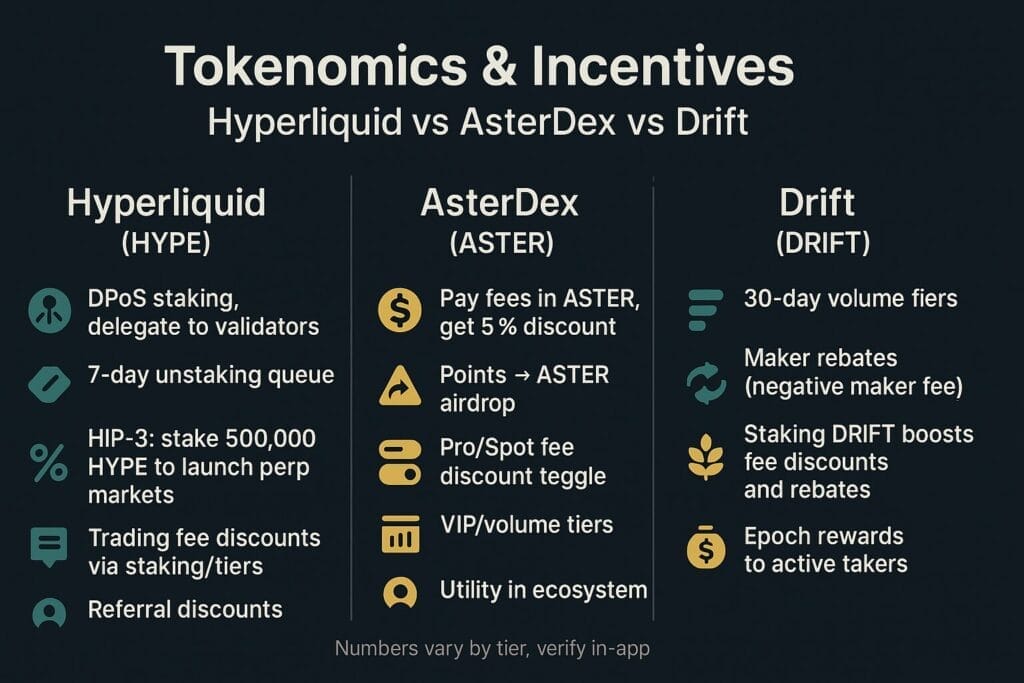 Hyperliquid vs AsterDex vs Drift: Tokenomics and Incentives