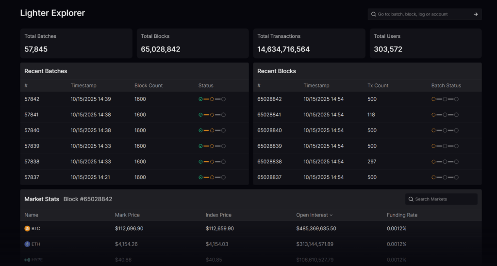 The Explorer tool provides users with full visibility into Lighter’s on-chain activity. It allows traders to view transactions, trade executions, and verification proofs directly, ensuring complete transparency in how orders are matched and liquidated. By making every state change publicly auditable, the Explorer reinforces trust and accountability within the Lighter ecosystem.
