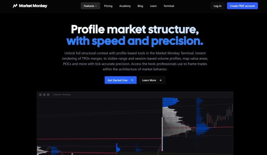 Market Monkey provides a profile-based market structure toolkit designed to help traders understand how price develops over time and where value is truly established. Using tick-accurate data and ultra-fast rendering, Market Monkey enables traders to frame markets through TPO (Market Profile) and Volume Profile analysis, revealing the underlying architecture that drives price behavior rather than just surface-level movement.