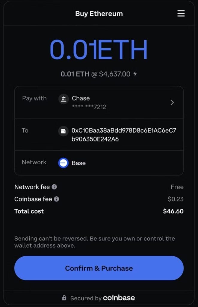 You can purchase crypto directly using credit/debit cards, bank transfers (ACH or wire), or digital wallets like Apple Pay and Google Pay through Coinbase-powered onramp integration.