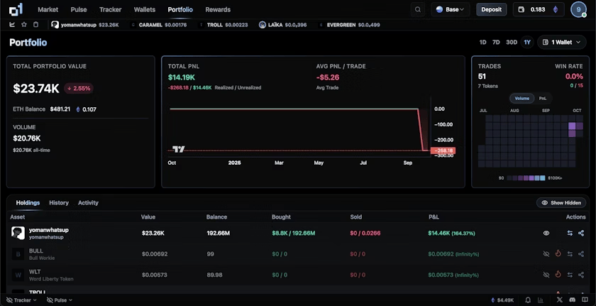 View a complete snapshot of your assets across all wallets, including real-time balance updates, performance charts, and token-level analytics. The dashboard’s intuitive layout helps you quickly assess your trading health and identify areas for improvement.