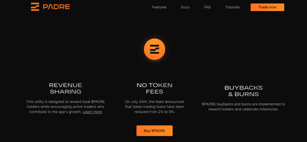 Padre offers up to 35% cashback on trading fees, one of its strongest incentives for active users. In addition, $PADRE holders can participate in a revenue-sharing program that redistributes part of the platform’s earnings. An affiliate and referral system is also in place, helping users save more by inviting others to the platform.