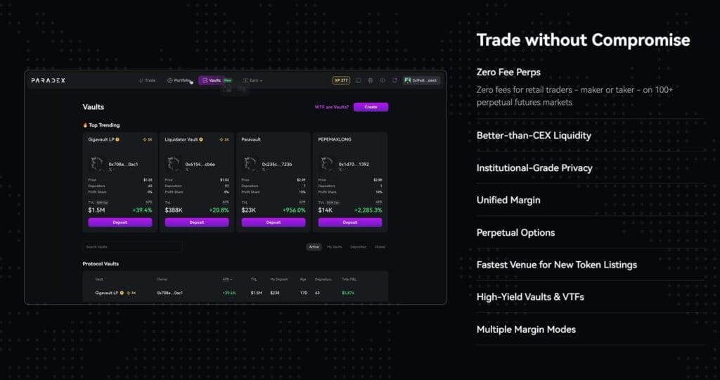 Paradex is shaping up to be one of the most ambitious on-chain trading venues in 2025: a zero-fee, privacy-preserving derivatives exchange with a genuinely novel product mix (perpetual futures, perpetual options, and vaults) running on its own high-performance Layer-2.