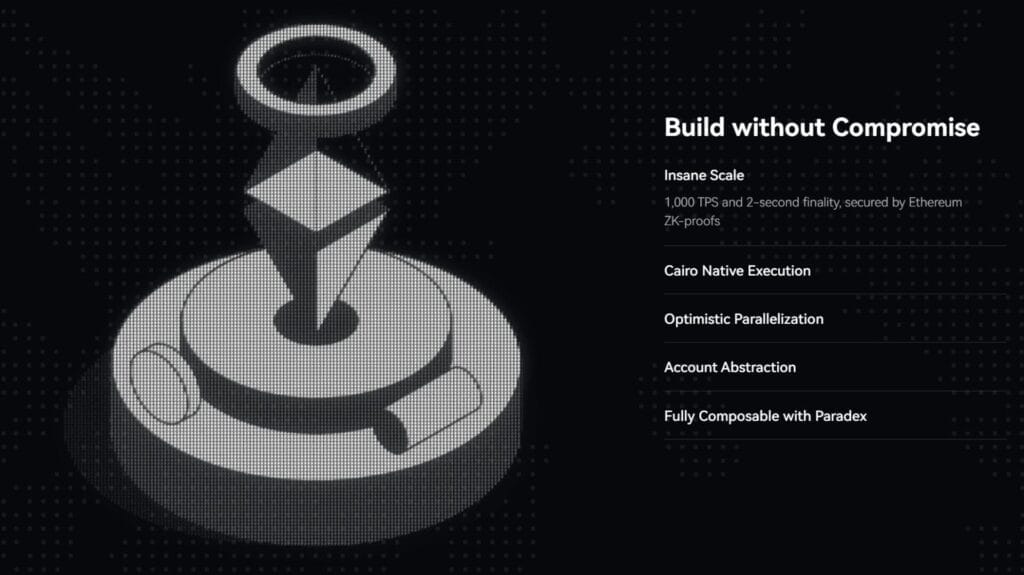 Paradex runs entirely on DimeVM, its proprietary StarkNet-based L2.