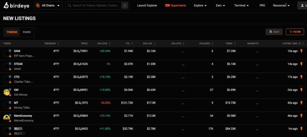 - Birdeye – New Listings: https://birdeye.so/new-listings?chain=allChain