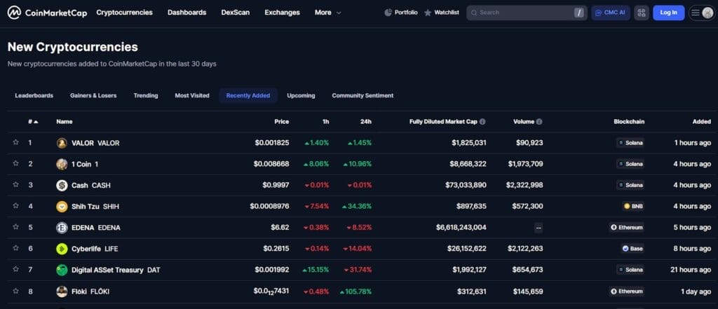 - CoinMarketCap – Recently Added: https://coinmarketcap.com/new/
