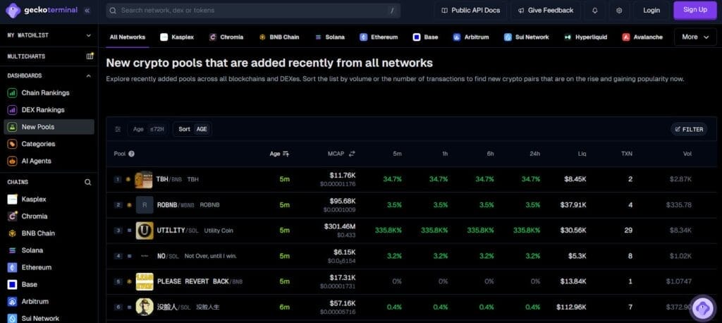 - GeckoTerminal – New Crypto Pools: https://www.geckoterminal.com/explore/new-crypto-pools