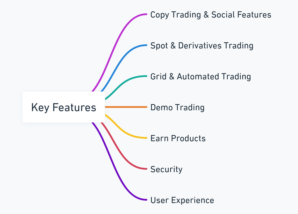 - Wide feature set in a single platform (copy trading, P2P, Launchpool)