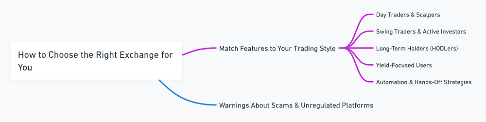 Each exchange profile will clearly explain its strengths, trade-offs, and best-fit user, so you can map your needs — whether that’s low fees, a specific altcoin, derivatives access, or institutional features — to the right platform.