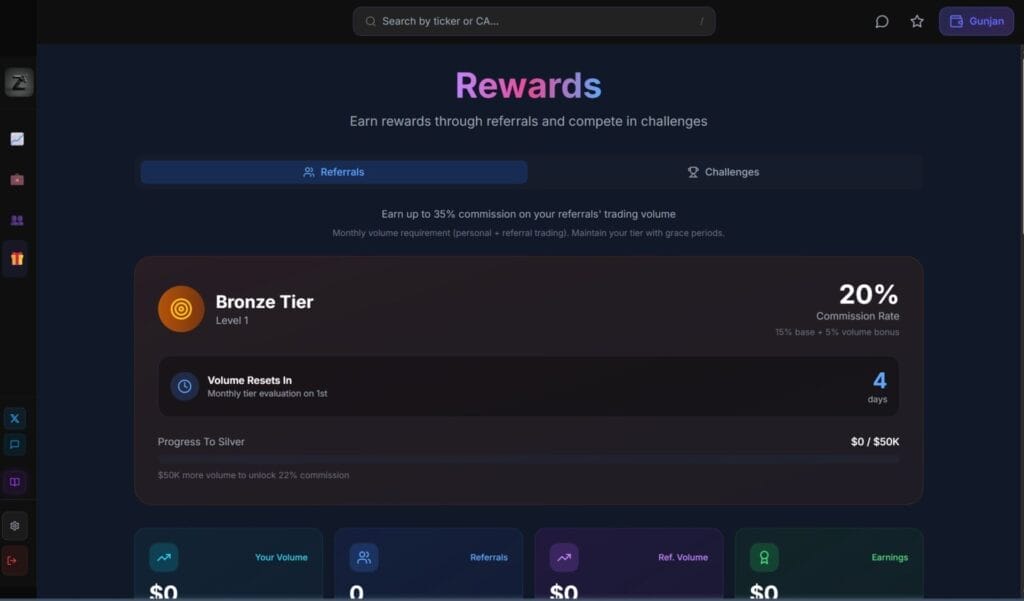 By increasing your trading volume and climbing the rewards tiers (Bronze, Silver, Gold, Platinum), you can unlock lower fees and additional benefits.